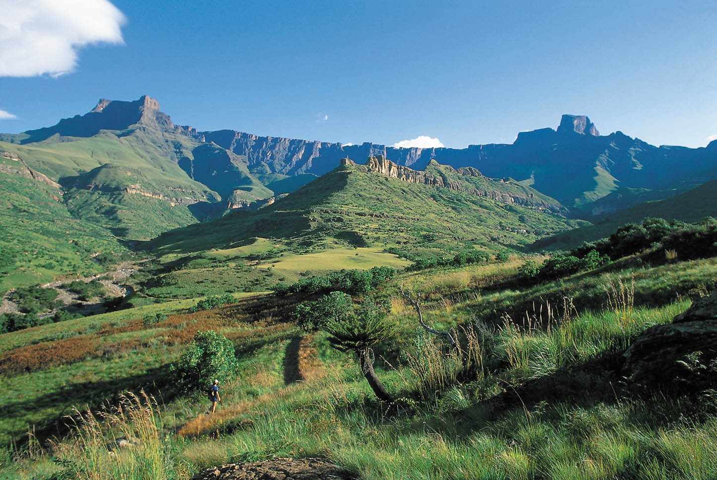 | 7. Tag: Durban – Drakensberge Stadtrundfahrt durch Südafrikas größte Hafenstadt. Bei einem Bummel über den Indischen Markt fühlen Sie sich wie in Indien, denn hier gibt es den höchsten indischen Bevölkerungsanteil, ein Erbe der britischen Kolonialzeit. Weiterfahrt in die Drakensberge mit den schönsten Gebirgsszenarien des Landes. 2 Übernachtungen im Drakensberg Gardens Hotel o.ä. (F, A) 8. Tag: Drakensberge 9. Tag: Drakensberge – Shakaland – Hluhluwe |