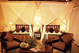 Ruhechalet „Sala". Die Räume sind in afrikanischem Stil dekoriert.